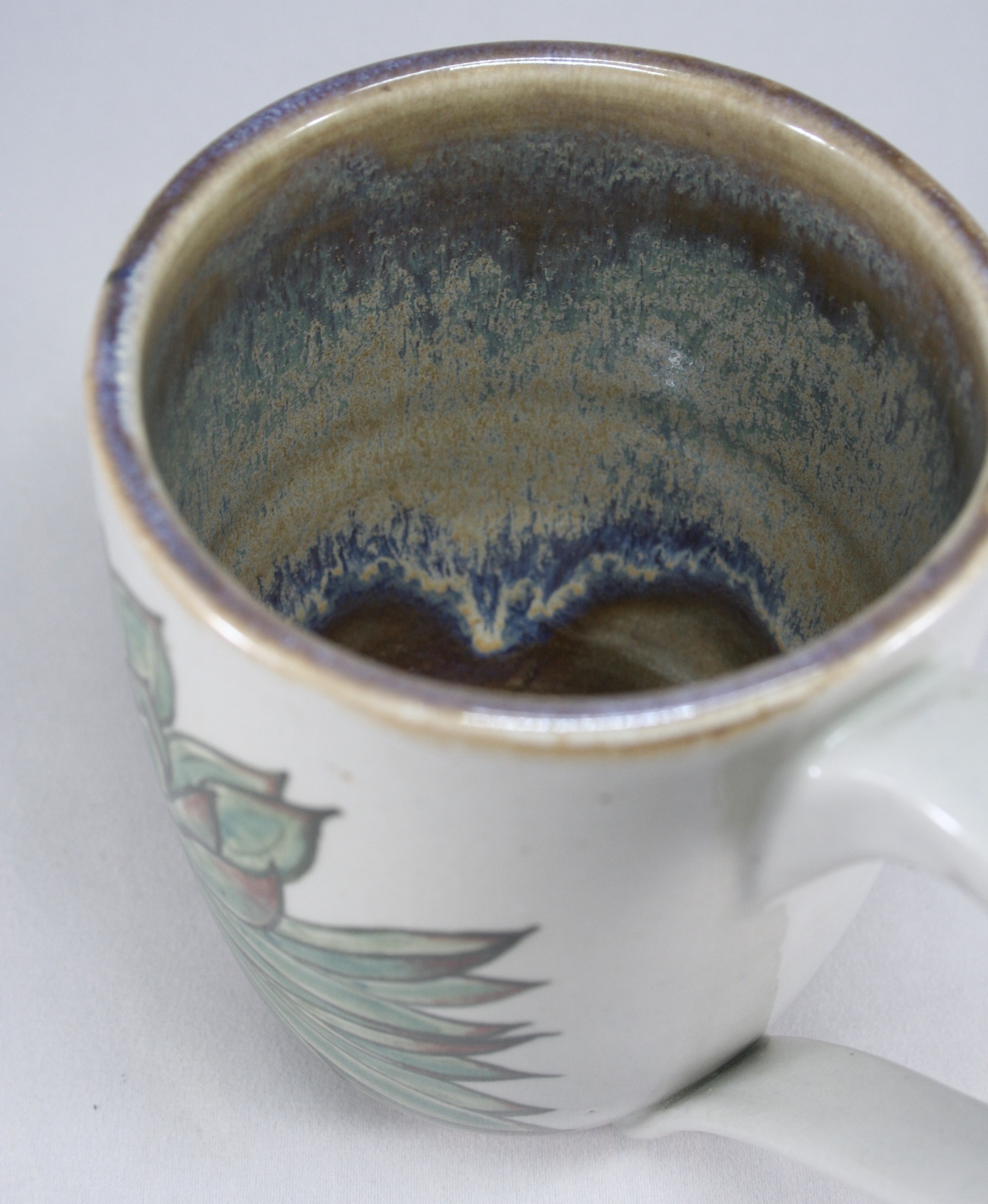 These mugs are hand thrown from stoneware and are microwave and dishwasher safe.