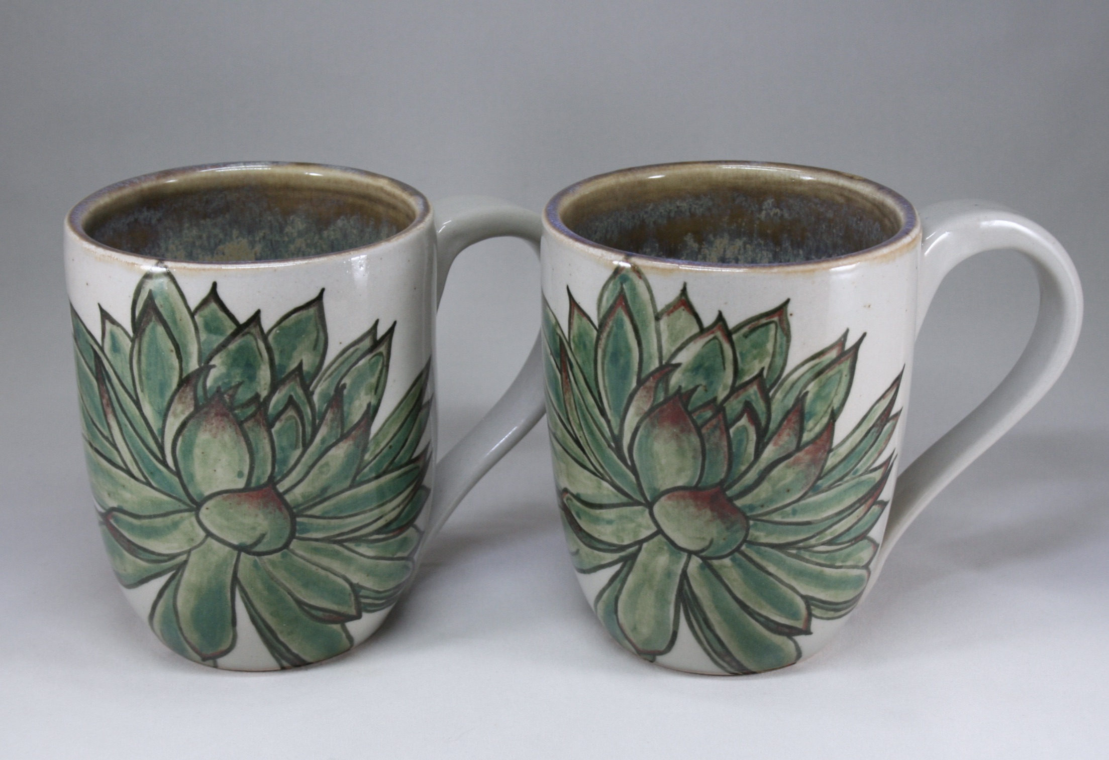 These lovingly painted lipstick echeveria mugs are painted from a plant in my own collection!