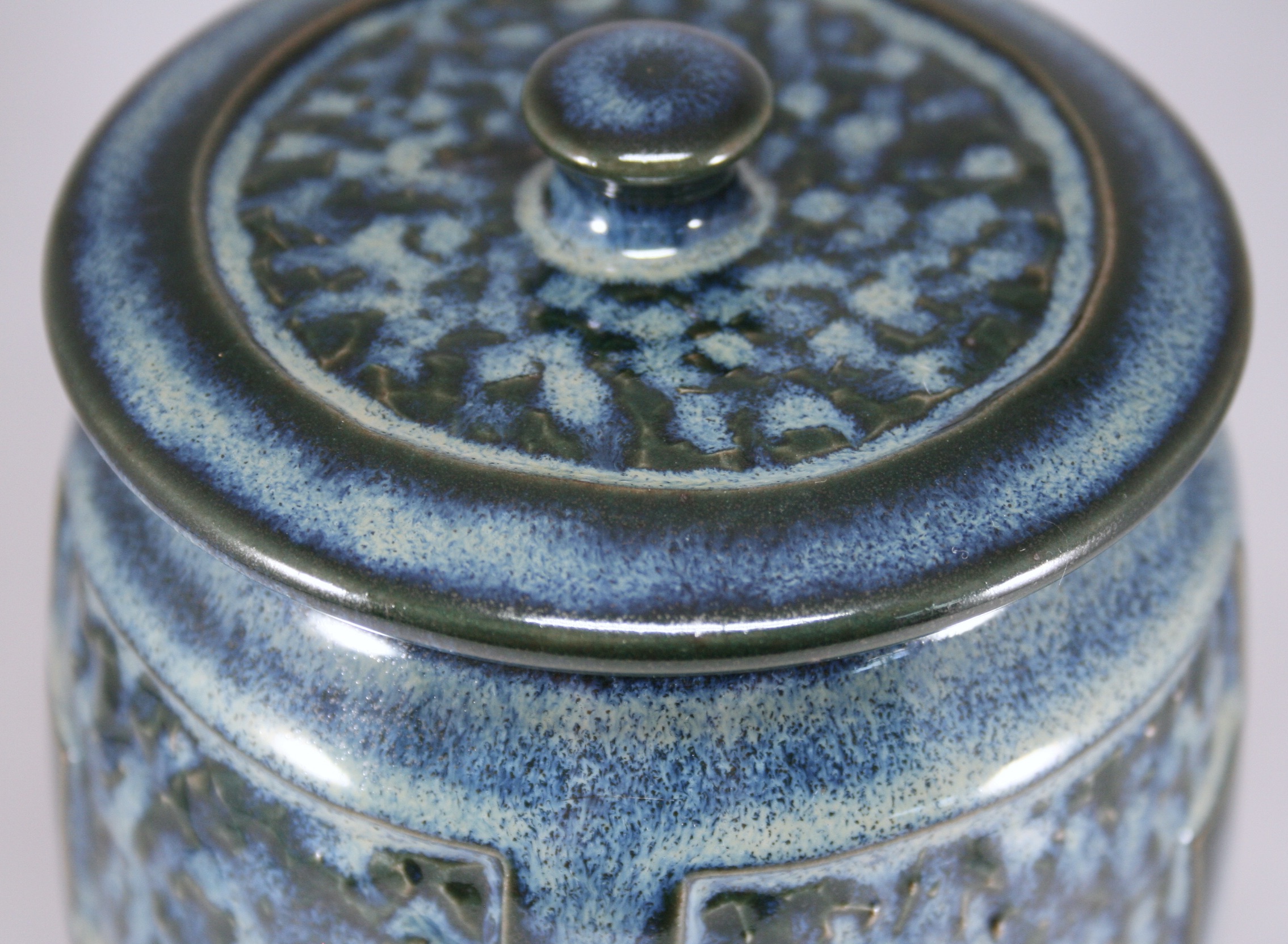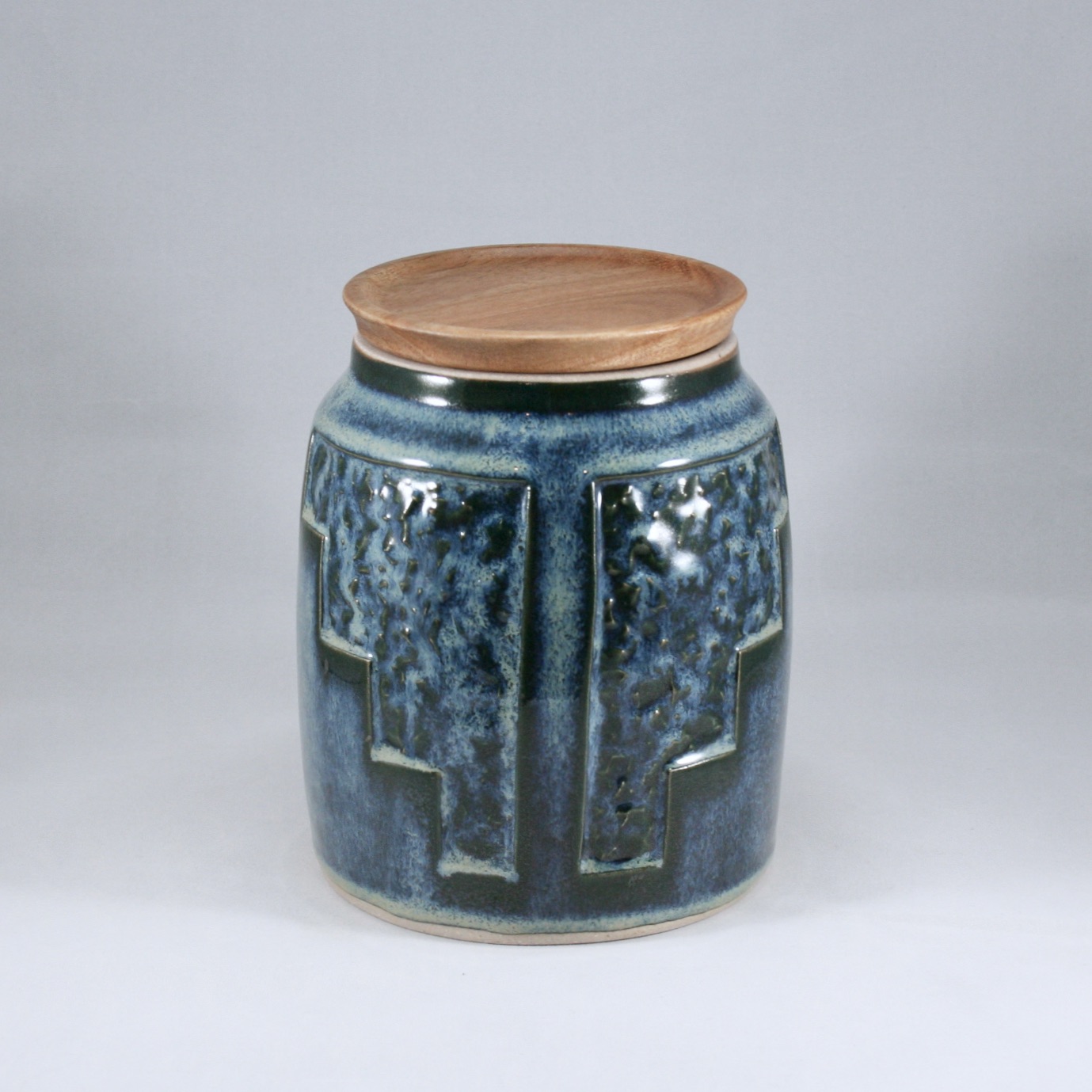 This lovely hand-carved jar would brighten up any kitchen and would be perfect for anything from coffee storage to a cookie jar!