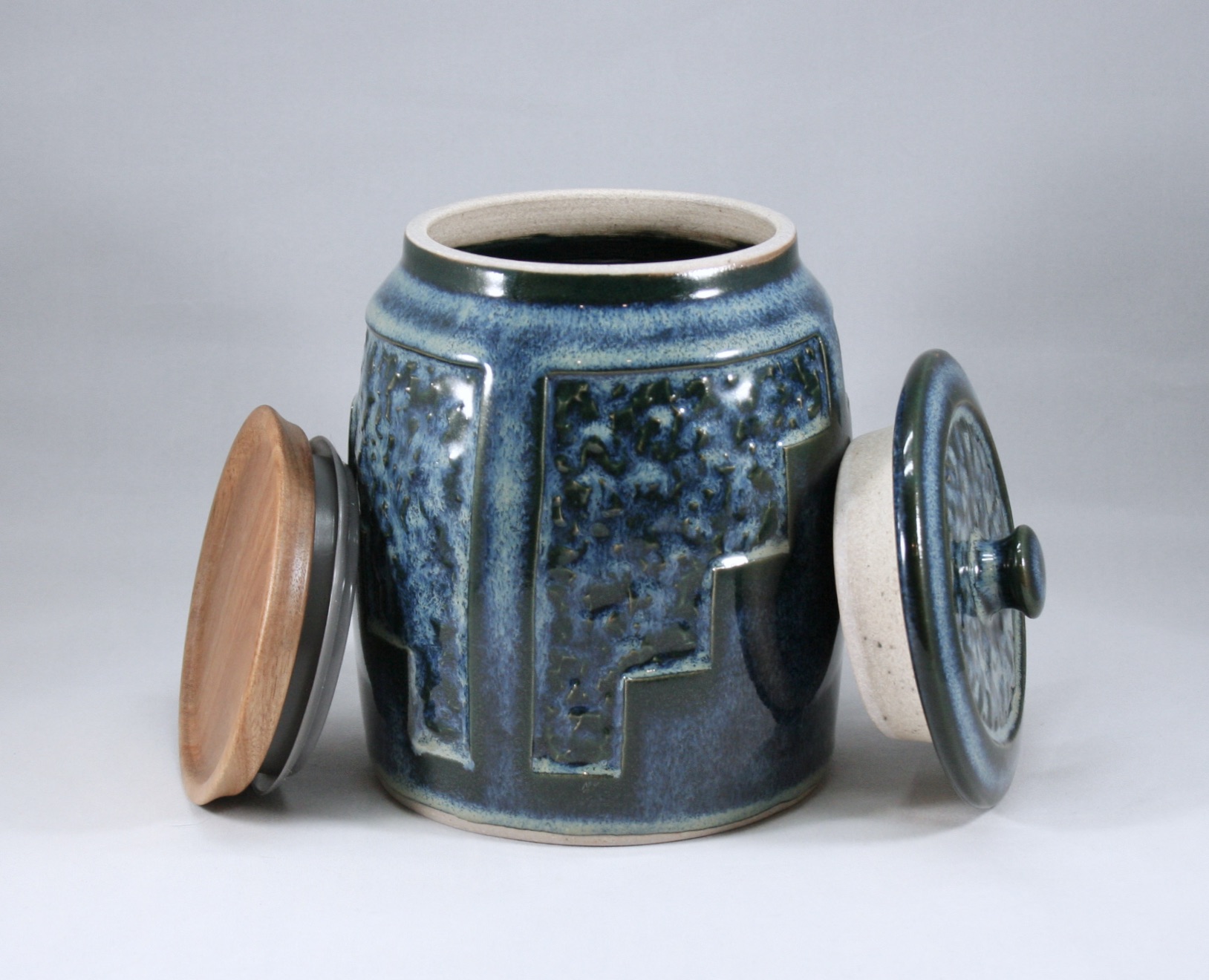 The jar comes with a ceramic lid as well as an optional wooden lid with a silicon seal for an additional $4.