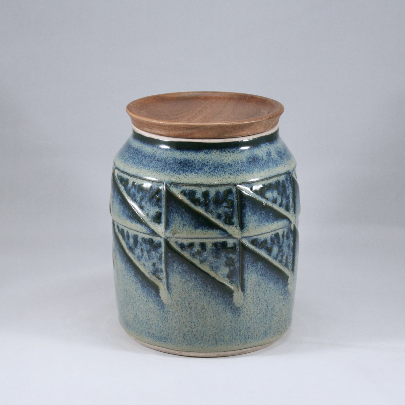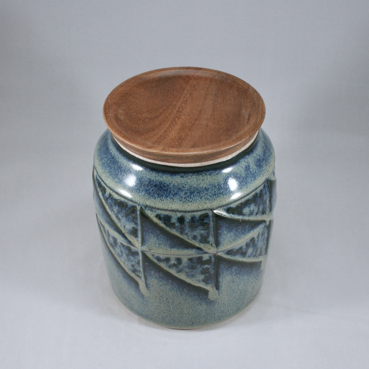 This lovely hand-carved jar would brighten up any kitchen and would be perfect for anything from coffee storage to a cookie jar!