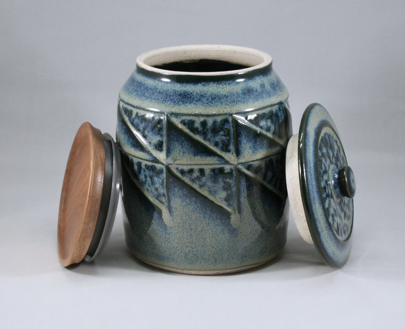 The jar comes with a ceramic lid as well as an optional wooden lid with a silicon seal for an additional $4.