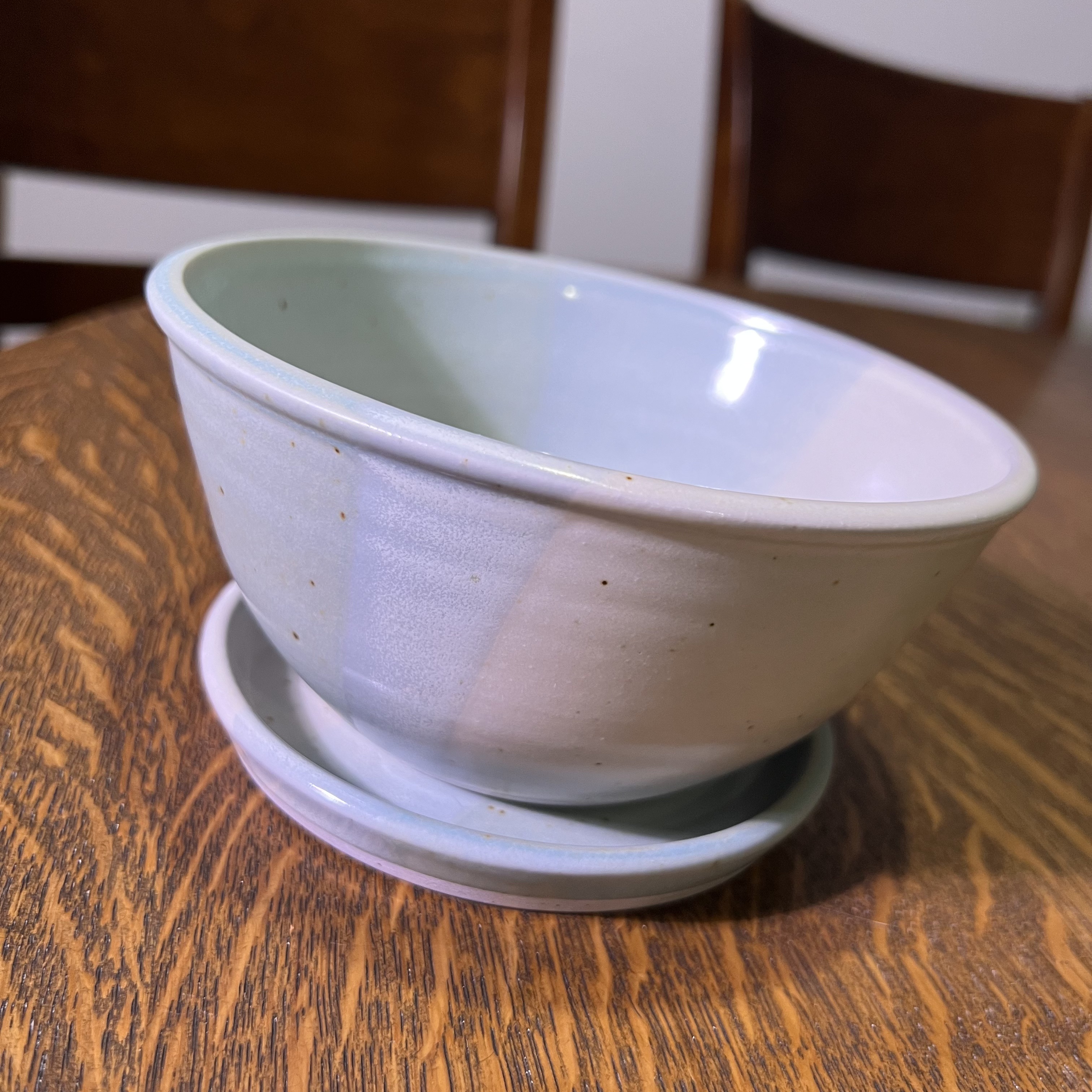 This medium bowl-shaped planter has a subtle and layered glaze that will allow your plant to take center stage!