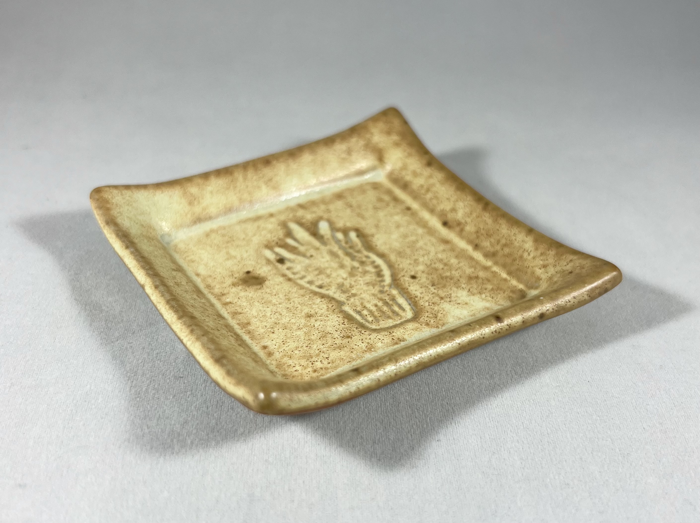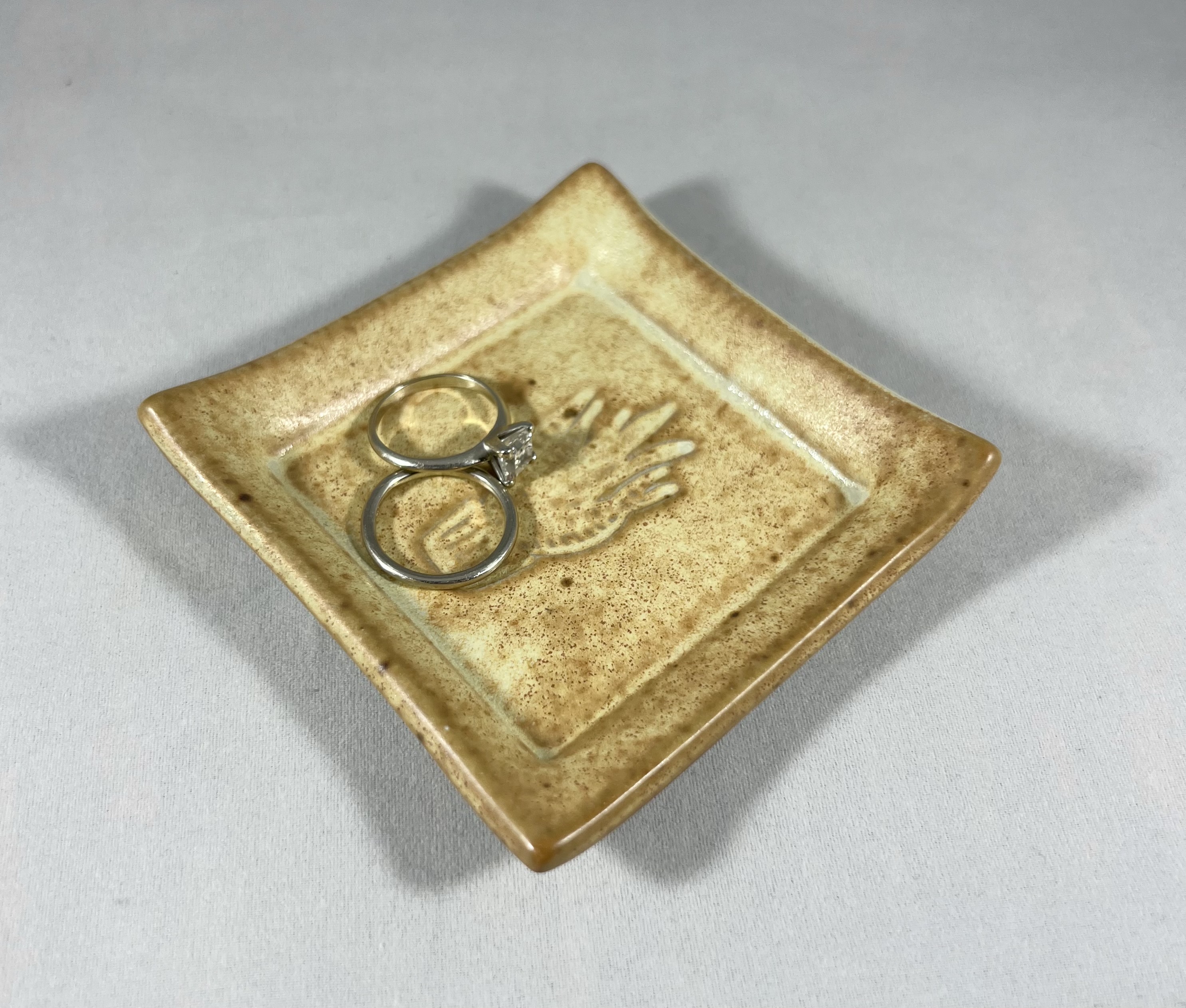 This rustic trinket tray was hand-built and stamped with a little snake plant. It is perfect for your rings, chapstick, or whatever happens to be in your pockets!